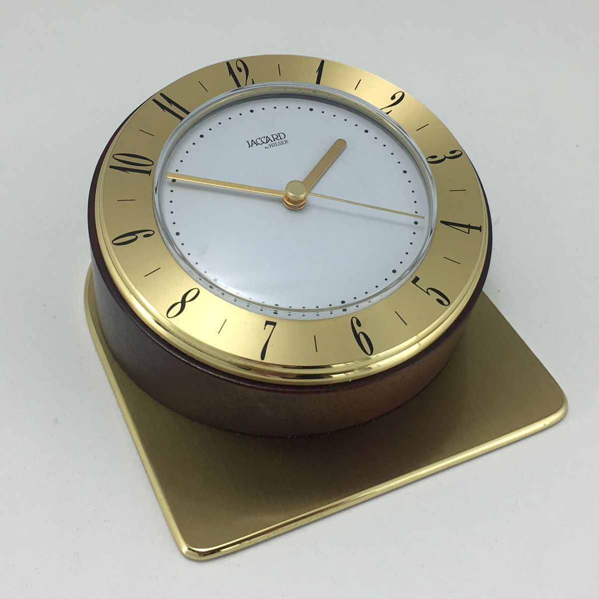 Features : Elegant Desk Clock in Timber and Brass.