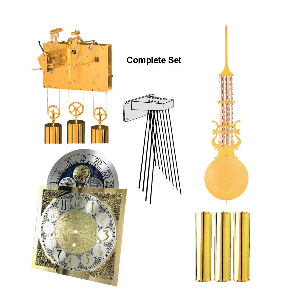 Description : Triple Chime Movement set to suit Full Width Grandfather Clocks
