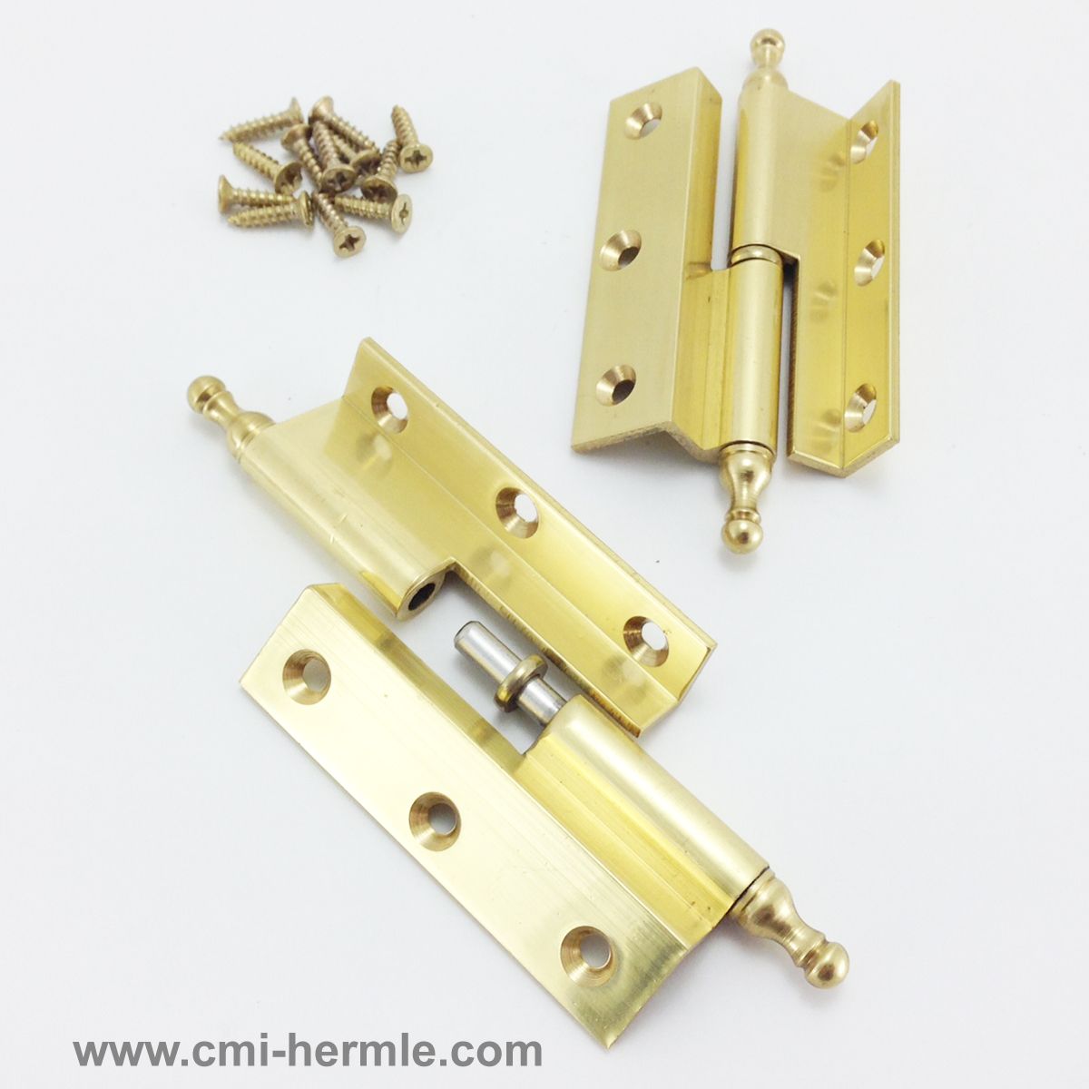 Lift Off style - Offset Solid Brass Hinge with Finial ends and Countersunk Holes.