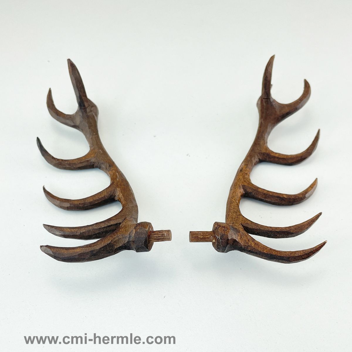 Cuckoo - Wood Antlers 130mm Pair -Ornately Carved Walnut